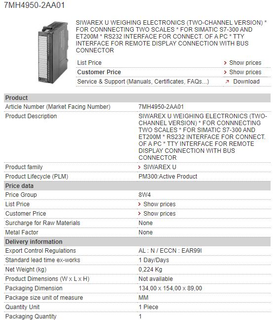 7MH4950-2AA01 7MH4 950-2AA01 Siemens Weighing Module